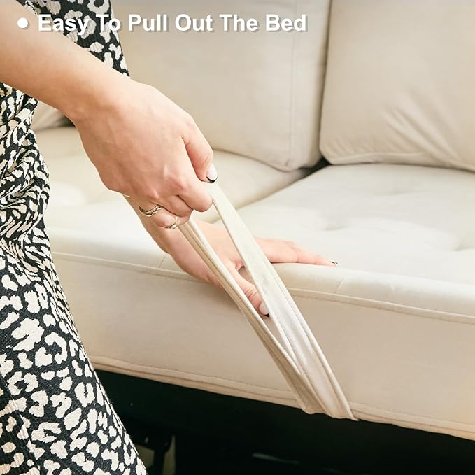 Belffin Modular Sectional Sleeper Sofa with Pull Out Couch Bed Modular Sleeper Loveseat Sectional Sofa Velvet Fabric for Living Room Apartment Beige