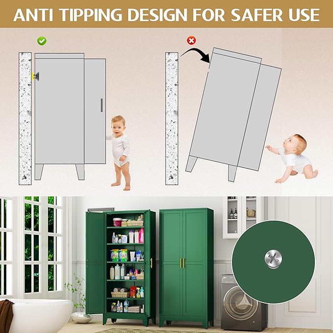 - 『Multi Purpose』The tall cabinet with doors and shelves are suitable for various home and office spaces, such as kitchen, restaurant, living room, dining room, bedroom, bathroom, study, office, laundry room, entryway, tool room, garage, etc. Beautiful cabinets always complement any scene