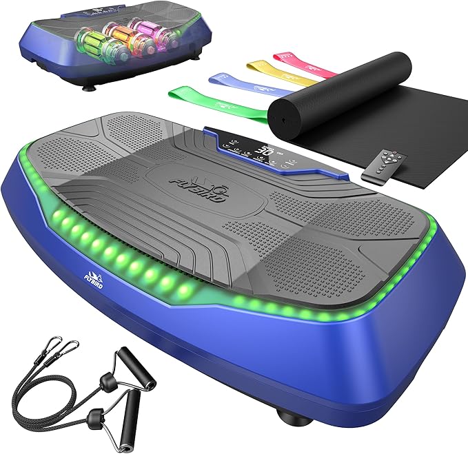 - Vibrate with FLYBIRD Now: Purchase a FLYBIRD 4D vibration plate and get 4 resistance bands, 2 loop bands and an exercise mat to complement your workout; Features wheels for easy moving and exclusively-designed anti-slip texture for safety