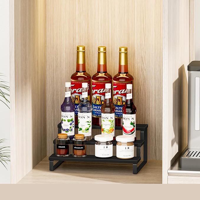 • Versatile Storage Options: Use this display stand rack to ondiments, coffee syrup bottles, spices, cans and kitchen supplies in the kitchen ; It can be used for books and decorations in the study; It can be used to store bath towels, lotions, cosmetics, moisturizers, nail polish, soap and shampoo in the bathroom. No exaggeration, it can be applied to any corner of the house.