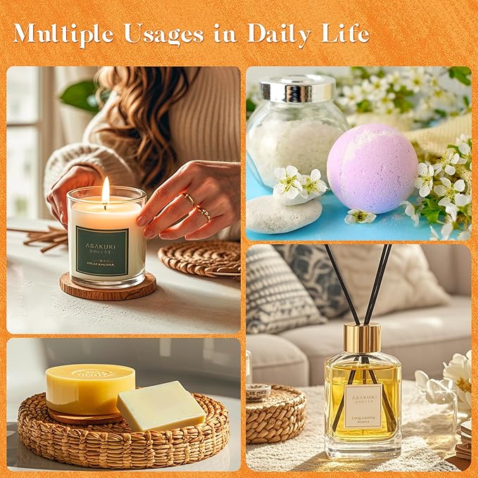 • Multifunctional Oil Blends: ASAKUKI fragrance essential oils are designed for but not limited to candle scents for candle making, diffuser or humidifier oil scents, oils for laundry, soap making supplies, slime scents, bath bombs, and many more DIYs