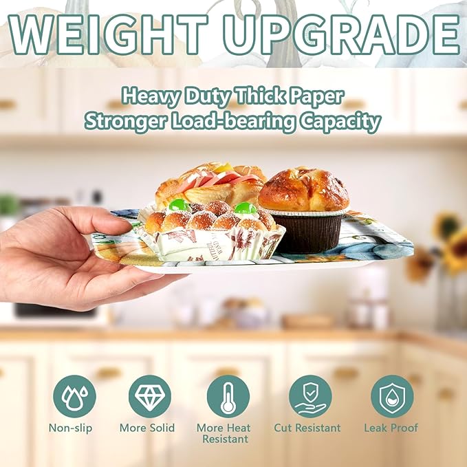 - Blue Pumpkin and Wood Grain Design: Our autumn thanksgiving paper plates set features watercolor style, adopting a large capacity square plates, use white wood grain as the base color, with white, blue and orange pumpkins, simple and stylish, elegant and generous. It can be well paired with certain occasions or table decorations, with a natural and refreshing color that makes people feel relaxed and comfortable, very suitable for fall party and thanksgiving party.