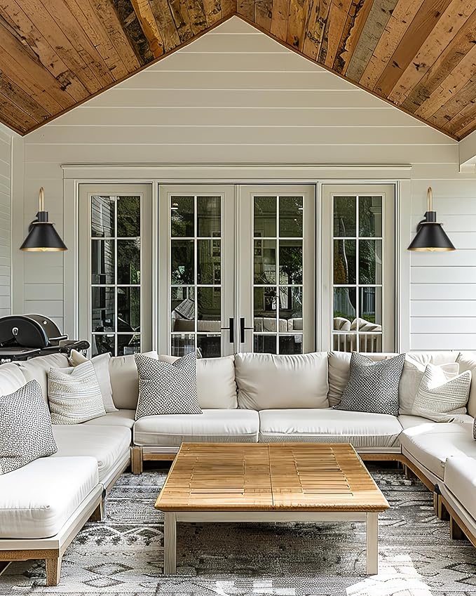 • 【Modern Design】 This single wall lamp compliments the look of almost any indoor or semi-outdoor space, matte black finish decored with brushed gold, the brass interior reflects the light to form an extremely accent contrast. (Attention: Moisture-proof but not waterproof, please keep it away from water)