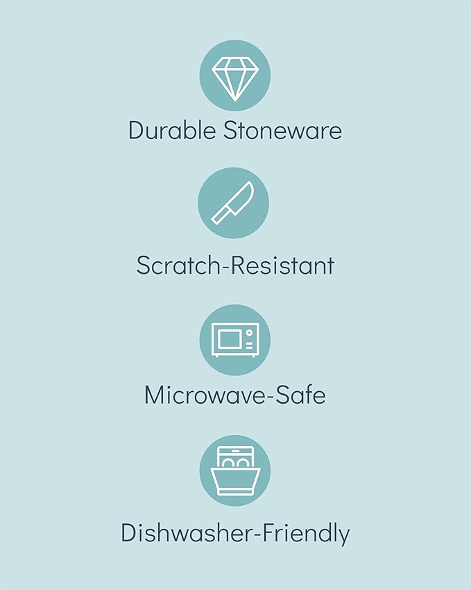 • ✅ DURABLE QUALITY THAT LASTS: Each piece is crafted from high-quality stoneware with a fired, glazed, and scratch-resistant finish, perfect for those who appreciate durability and rustic style in their dinnerware.