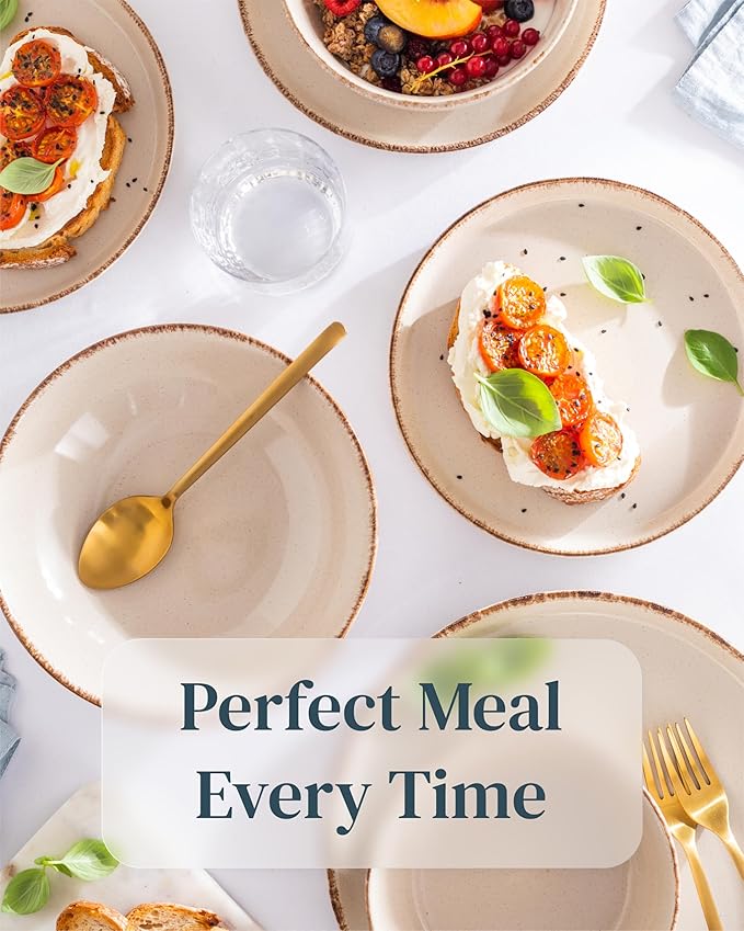 • ✅ BRING RUSTIC CHARM TO YOUR HOME: Elevate your dining experience with this 16-piece dinnerware set in rustic beige stoneware, adding a touch of elegance and coziness to your table setting.