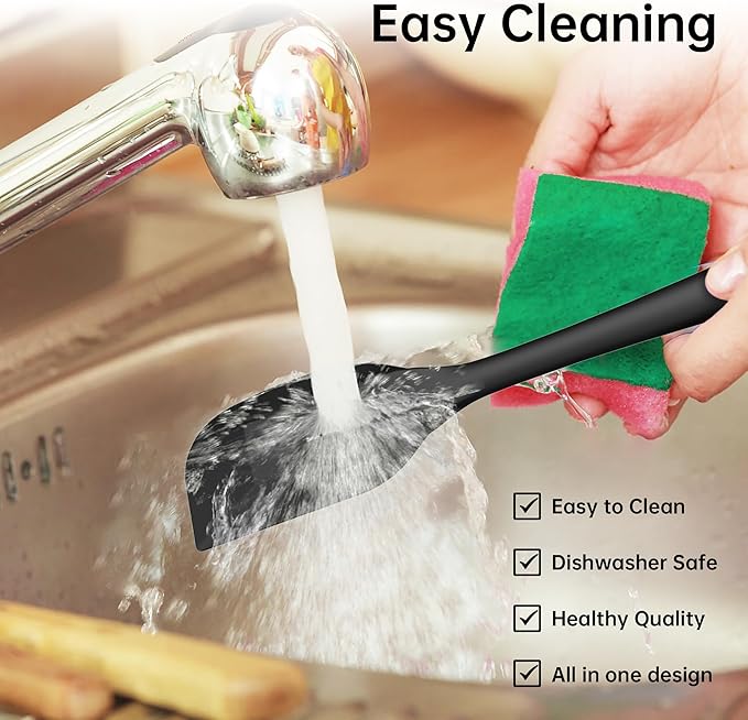 • 【Easy to Clean】: The spatulas for kitchen use in a seamless one-piece shape, comfortable to hold, can be placed in the dishwasher, with a hanging hole design, and can be hung after cleaning.