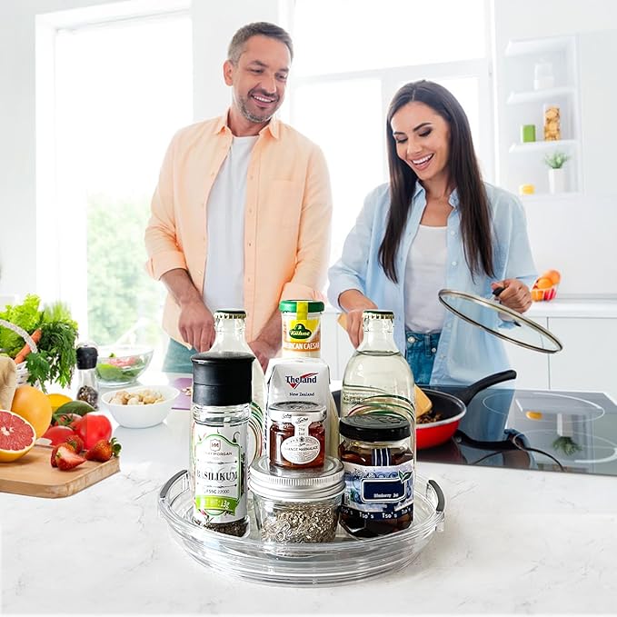 - Versatile & Multi-Functional: This isnât just any lazy susan. Use it in your kitchen to organize condiments like bottles and spice jars, in the pantry for drinks and snacks, in the bathroom for toiletries and cosmetics, and in the refrigerator for fruits and vegetables. Ideal for organizing in various settings, including kitchen countertop, under sink, cabinet, closet, pantry, freezer, refrigerator, bathroom, itâs the perfect solution for any room!