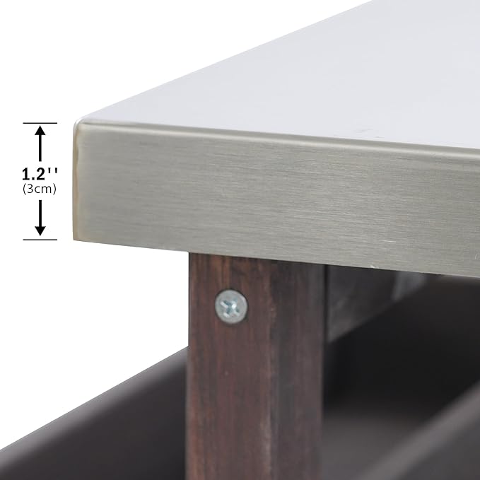 - Heavy Duty Structure: Crafted from 100% premium fir wood, this outdoor bar cart combines natural charm with a focus on skin-friendliness and minimal chemical coatings. The 1.2-inch thick 201 stainless steel tabletop provides a durable, easy-to-clean surface for food preparation, ensuring a long-lasting and sturdy product designed exclusively for your home.