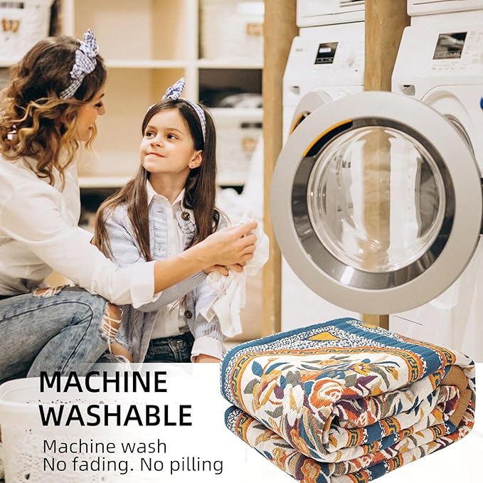 Boho Throw Blanket for Bed - 100% Pure Cotton Ultra Soft Rustic Quilt - Farmhouse Decor Bed Blankets, All Season Rustic Throw for Sofa Couch Chair(60"×80", Floral)