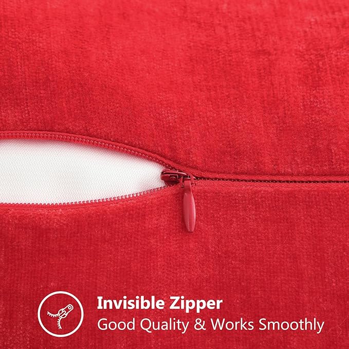 decorUhome Chenille Soft Throw Pillow Covers 20x20 Set of 2, Farmhouse Velvet Neutral Decorative Euro Pillow Covers with Stitched Edge for Couch Sofa Bed Home Decor, Red