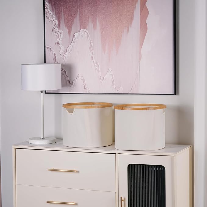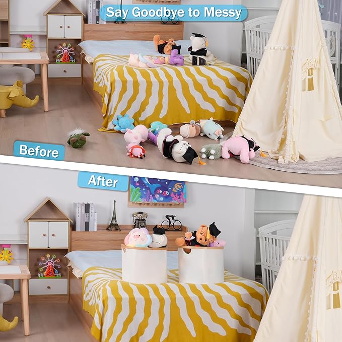 • 【Stylish Appearance】The neutral color and bamboo frame give the fabric storage bins a simple and elegant look. It will look great in the bedroom, bathroom or living room. When you don't know what to give as a gift, it will be a great idea.