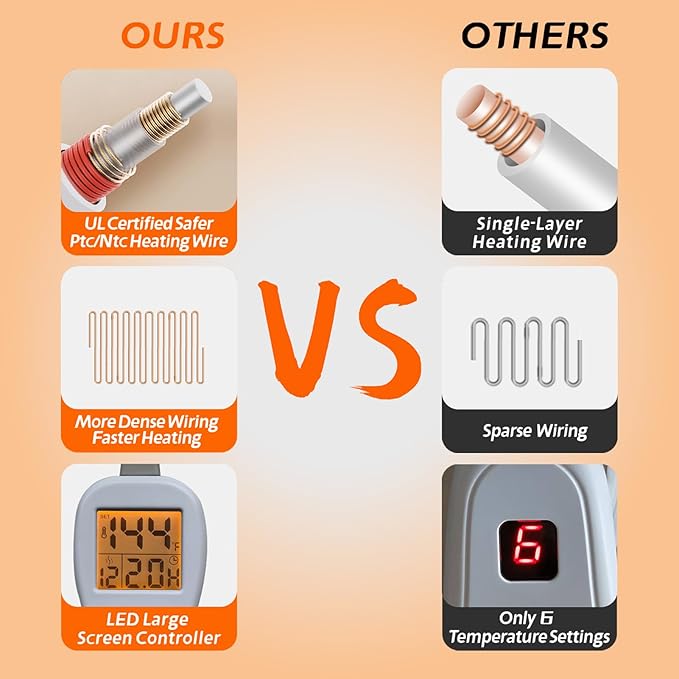 - Special Feature : Large Size, Fast-Heating, Multiple Temperature Settings, Removable Controller, Machine Washable