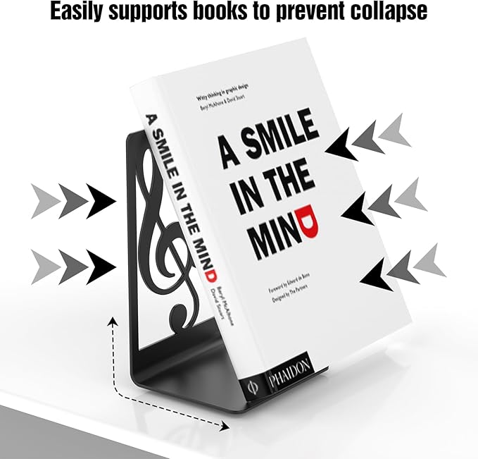 • 【Metal Book Ends】: Crafted from selected heavy-duty steel, our book ends features unique designs of musical notes and flowers, adding an artistic ambiance to your reading space. Not only practical but also aesthetically pleasing.