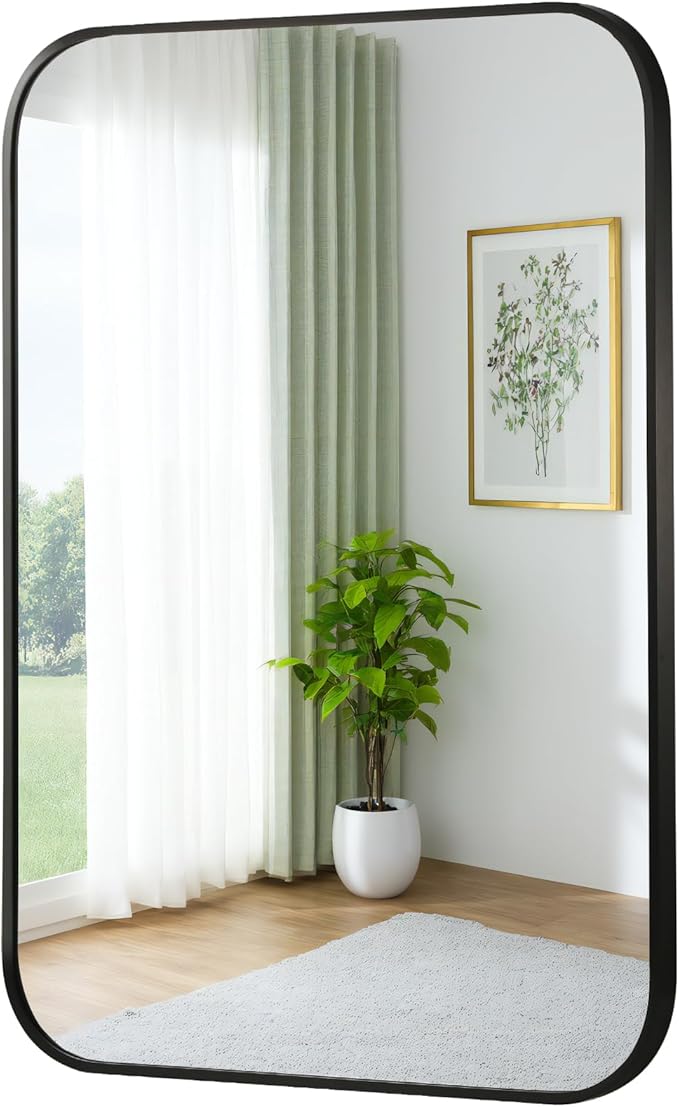FARMER 22x30 Inch Black Bathroom Mirror, Rectangle Vanity Mirror, Brushed Mirrors for Wall, Metal Frame Hanging Mirror with Round Corner for Bedrooms, Entryways, Living Rooms, Horizontal/Vertical