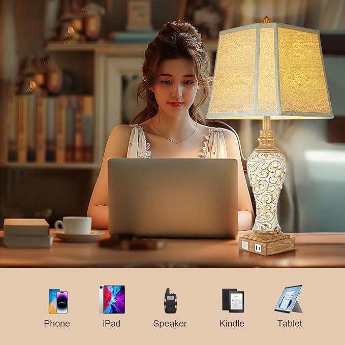 - USB CHARGE PORT: The bedside lamp has two independent switches to control the 9W main lamp and the night light (120V Only), which emits a soft light through the linen lampshade and creates a cozy glow to reduce eye strain and visual stress.Built-in USB C and USB A Charging port (5V/2A) for fast charging, no matter if the table lamp is on or off, can be used to charge cell phones, kindles, tablets, watches and other devices whether the lamp is on or off.