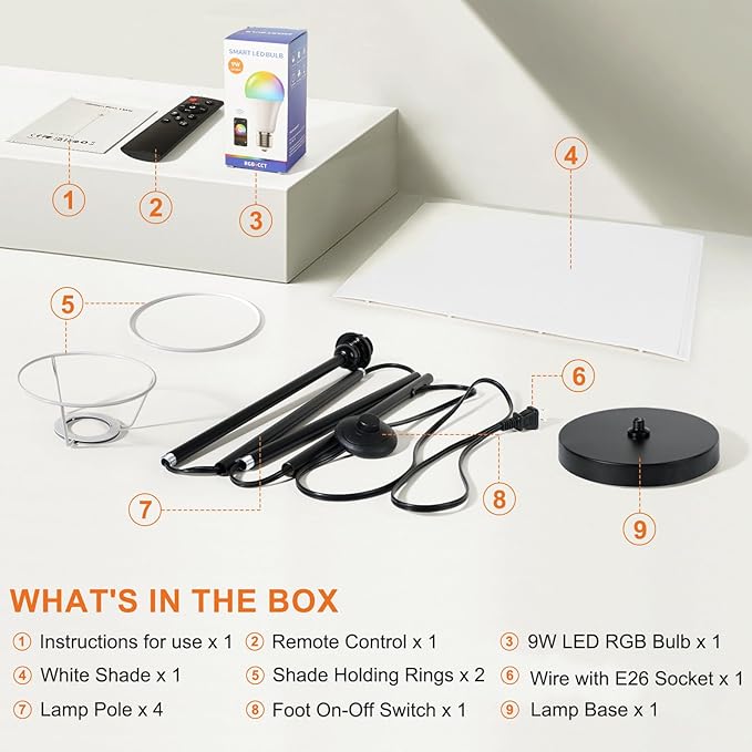 - 【Easy installation 】The tall floor lamp is easy to install—no extra tools are needed. Just follow the instructions to screw in all the parts, and you'll be ready to enjoy customizable lighting! Ideal for fathers day gifts, fathers day gifts for dad.