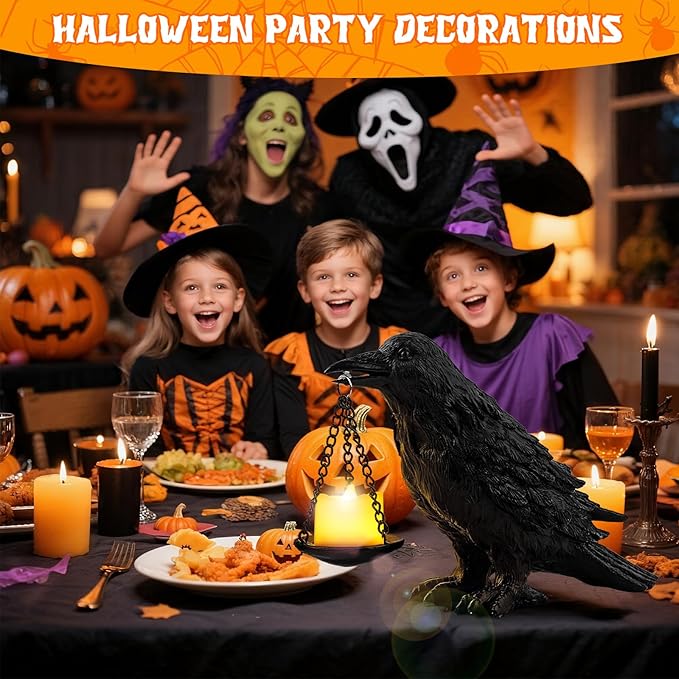• Versatile Candle Holder: The black plate held by the crow lamp can be used as a tealight or fake candle holder, adding a flickering glow to your Halloween festivities. Perfect for creating a spooky atmosphere in any setting, from haunted houses to themed parties.