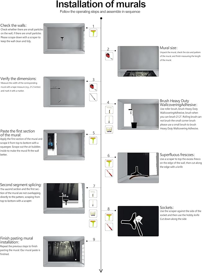 • Warm tip: This mural is not peel and stick, you need to buy your own glue, it is recommended to use Heavy Duty Wallcovering Adhesive.