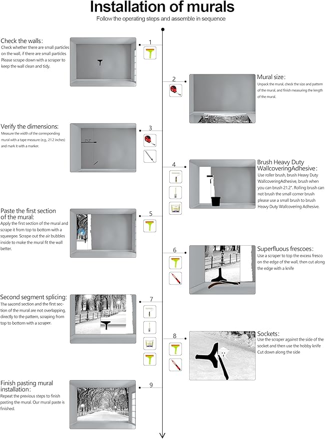 • Warm tip: This mural is not peel and stick, you need to buy your own glue, it is recommended to use Heavy Duty Wallcovering Adhesive.