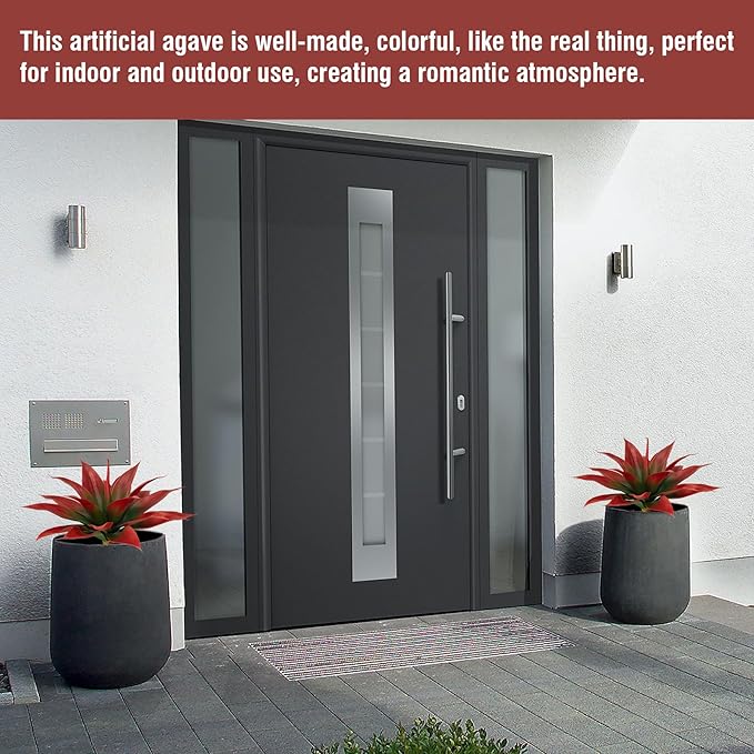 • Stunning wine red color: The realistic simulation effect of the wine red artificial agave plants exudes elegance and sophistication. Create a high-end atmosphere by combining them with green style desert or tropical plants for a stunning visual display.
