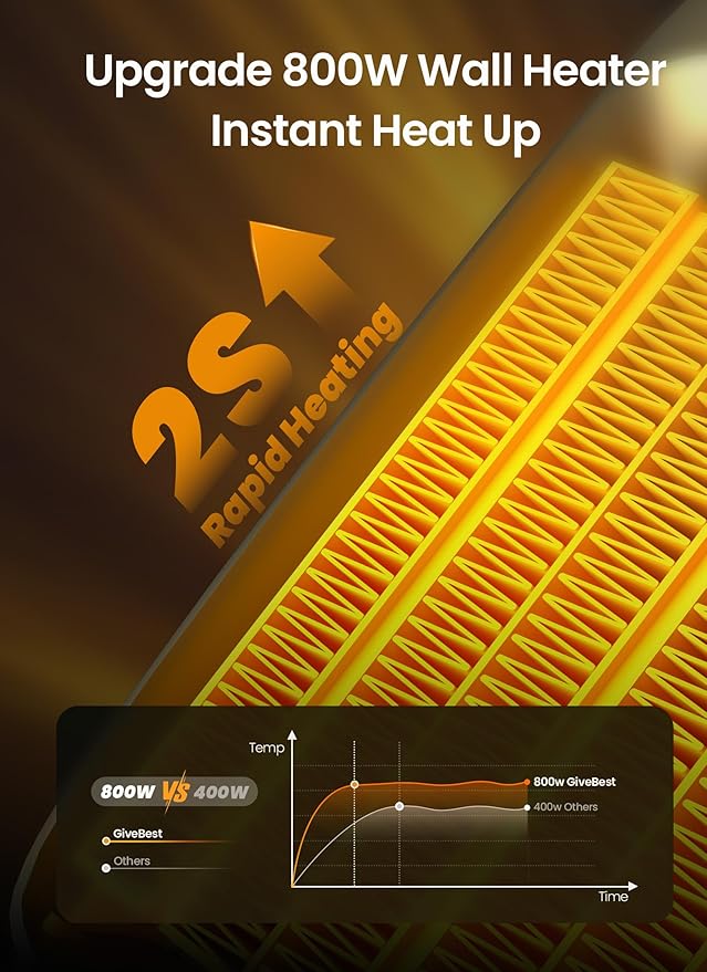 - Remote & 12H Timer/Memory Function – Effortless All-Day Warmth: Control the wall plug in heater remotely or set a 12 hour timer for hassle-free warmth. The memory function saves preferences, and the LED display shows settings clearly—ideal for seniors or those who prefer convenience