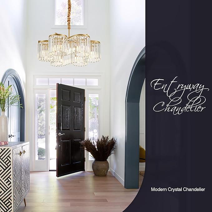 - 【Widely Used】Make a statement with our unique modern crystal chandelier , Its modern and minimalist silhouette exudes elegance, effortlessly complementing a variety of home styles. Perfect for dining rooms, kitchens, living rooms, entryway, foyers, and corridors, this fixture leaves a lasting impression.