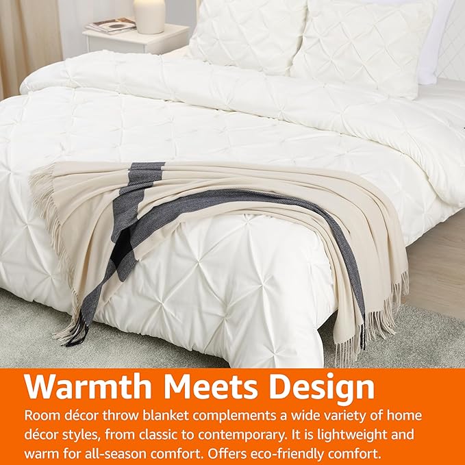 • 50 x 60-inch cozy throw blanket with textured cross-check pattern and fringed edges