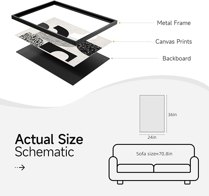 • [Framed Wall Art]: A large framed black and white abstract geometric canvas wall art, size is 24x36 inches, each painting with a sturdy, rust-resistant frame