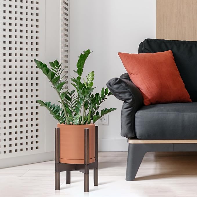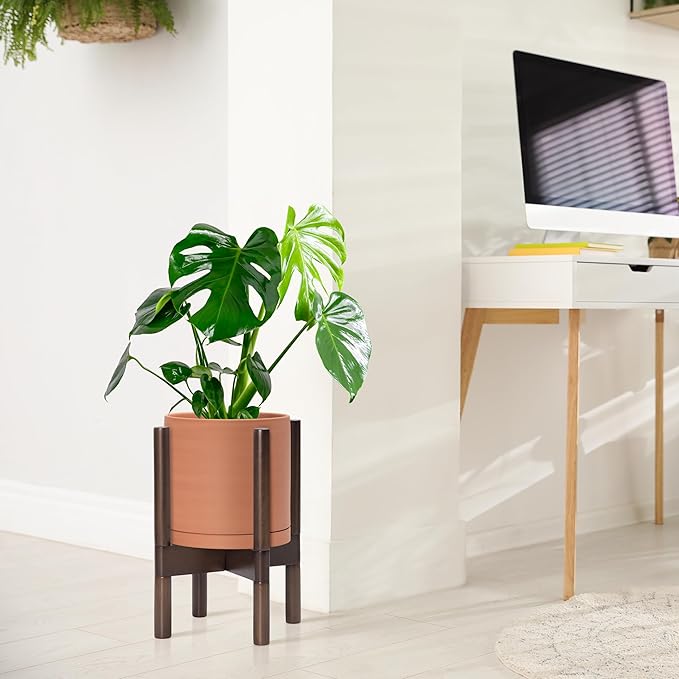 • A Complete Set: Mid-century terracotta planter, combined with a sculptural, solid wood stand that match perfectly together and looks great in anywhere.