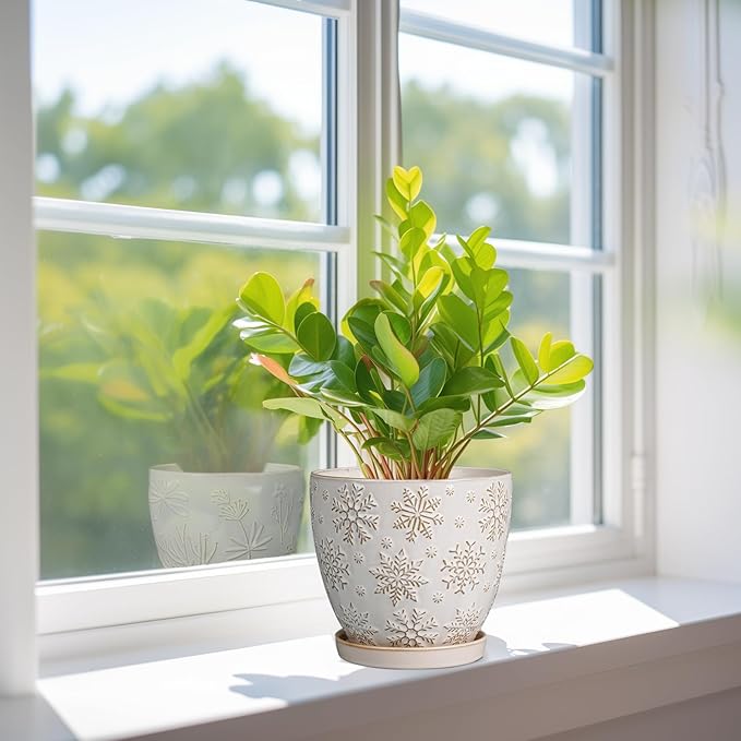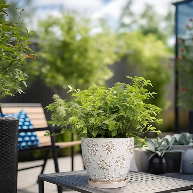 • Stylish Appearance: Our ceramic plant pot has a white main colour and a beautiful embossed snowflakes pattern on the surface, elegant appearance making it ideal for home decor, garden decor and office decor