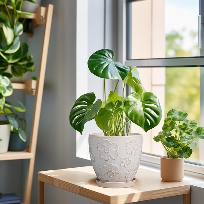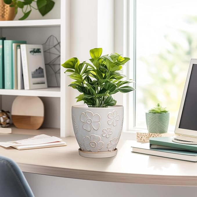 • Stylish Appearance: Our 6 inch plant pot has a white main colour and a beautiful embossed petal pattern on the surface, elegant appearance making it ideal for home decor, garden decor and office decor
