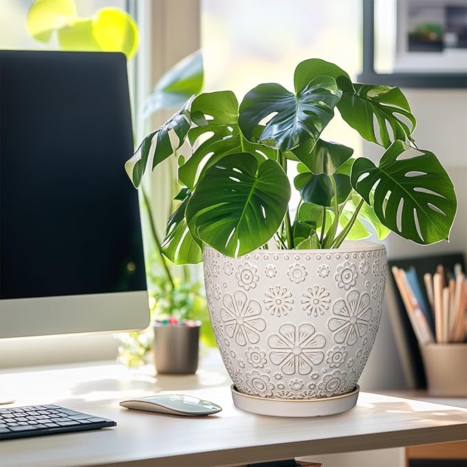 • Stylish Appearance: Our ceramic plant pot has a white main colour and a beautiful embossed petal pattern on the surface, elegant appearance making it ideal for home decor, garden decor and office decor