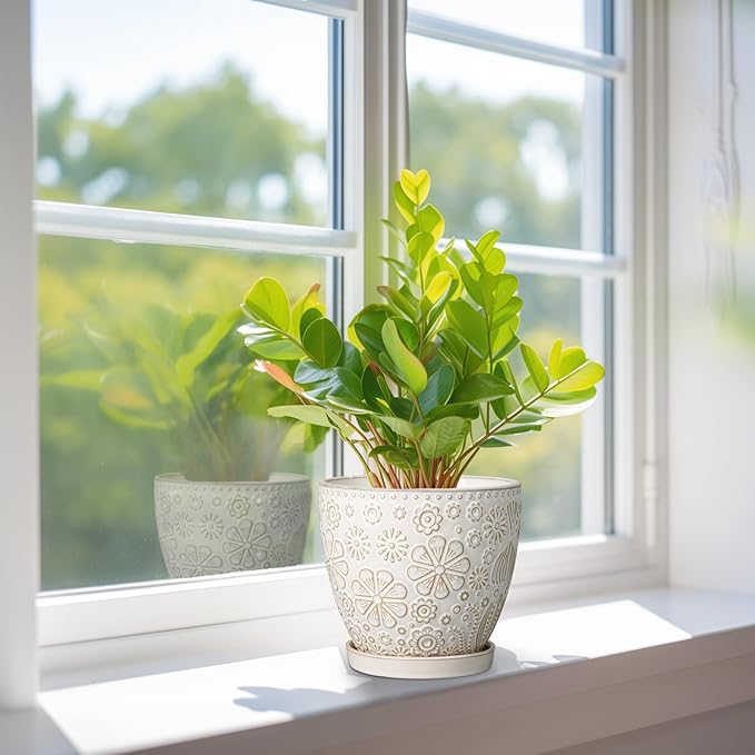 • Stylish Appearance: Our ceramic plant pot has a white main colour and a beautiful embossed petal pattern on the surface, elegant appearance making it ideal for home decor, garden decor and office decor