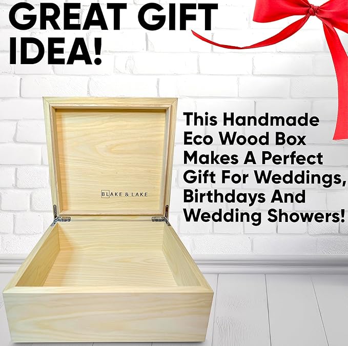 - Give the Gift of Organization with a wooden storage box by Blake and Lake. Comes with the Blake & Lake recycled cardboard box which makes it perfect for gift wrapping. Proudly give the gift of a wood eco keepsake box to a friend or loved one knowing it's not only safe for your home but a solid wooden box that will last a lifetime!
