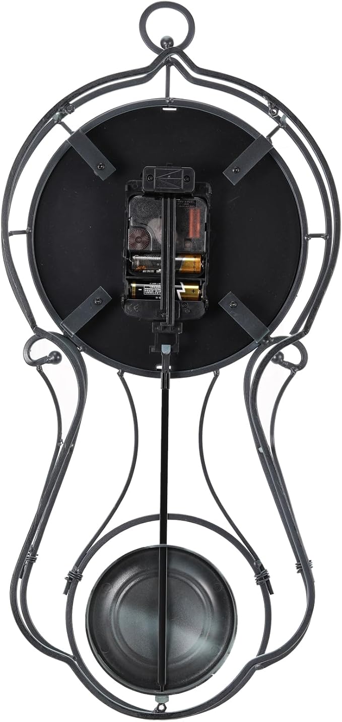 - [Simple Set Up & Easy to Read]: Insert 2 AA batteries in the back of the clock (not included, 1 battery for quartz movement, 1 battery for pendulum) and turn the setting knob to the correct time. Hang the pendulum on pendulum hanger, and watch it quietly swings,and enjoy your time