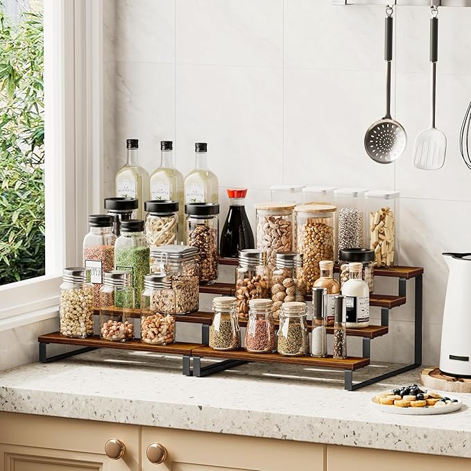 • Easy Access and Visibility: The tiered spice rack design allows for easy access and clear visibility of all your spices, so you can quickly find what you need while cooking. Say goodbye to rummaging through drawers and cupboards.