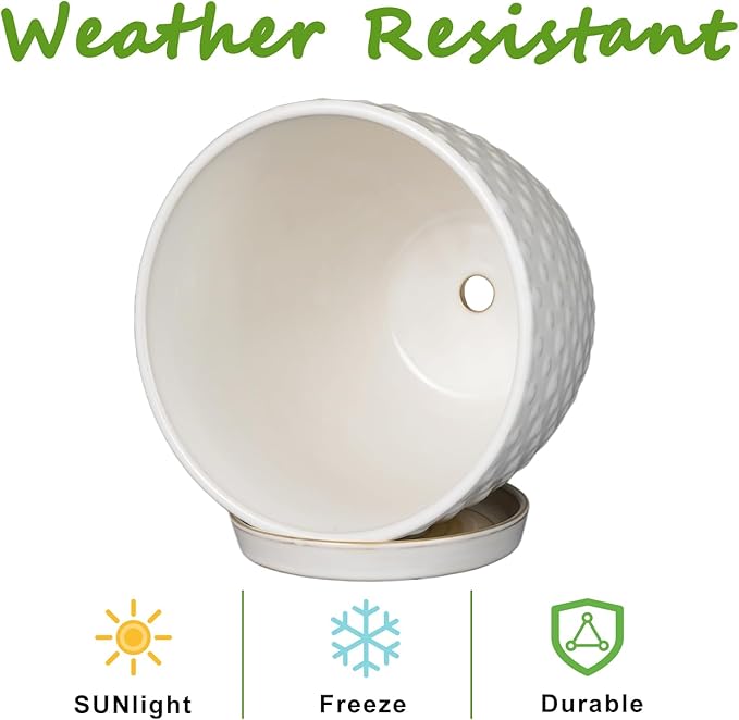 • Ideal Size: Each ceramic flower pot is 7 D x 6.5 H, which can provide enough space for your plants to thrive. One package includes ceramic planter, ceramic tray and mesh
