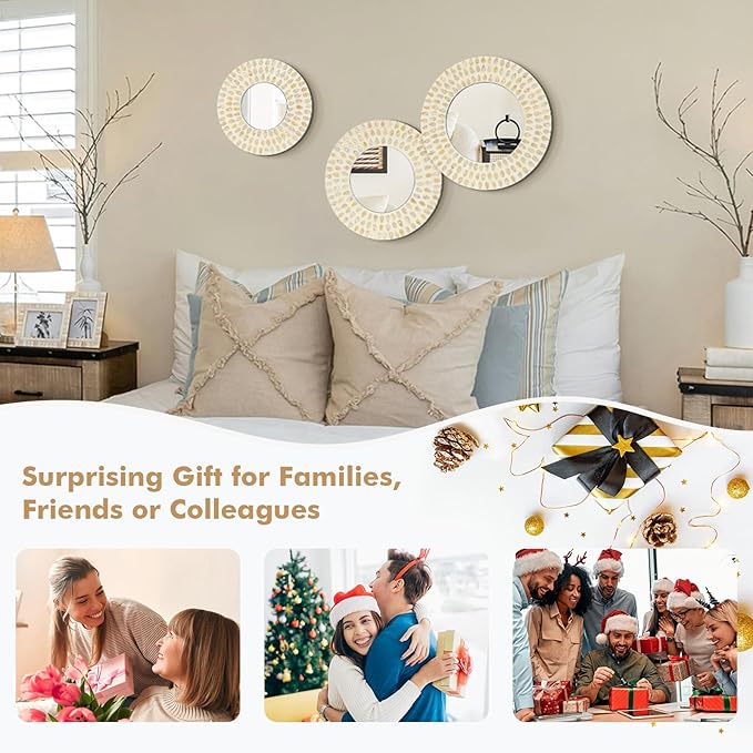 - VERSATILE MIRROR WALL DECOR: Whether moving into a new home or looking for a special gift, this boho decorative wall sculpture set is an unbeatable choice. Perfect for home office, hotel or coffee shop. It makes a lovely addition to living rooms, dining rooms, bedroom, bathroom, nursery, guest room, entrances, porch, fireplace, and by windows. Plus, a warm gift for families, friends or colleagues on holidays, birthdays, anniversaries, housewarming, Christmas or Thanksgiving