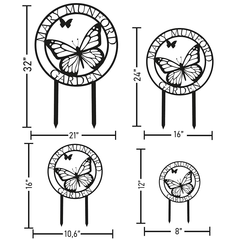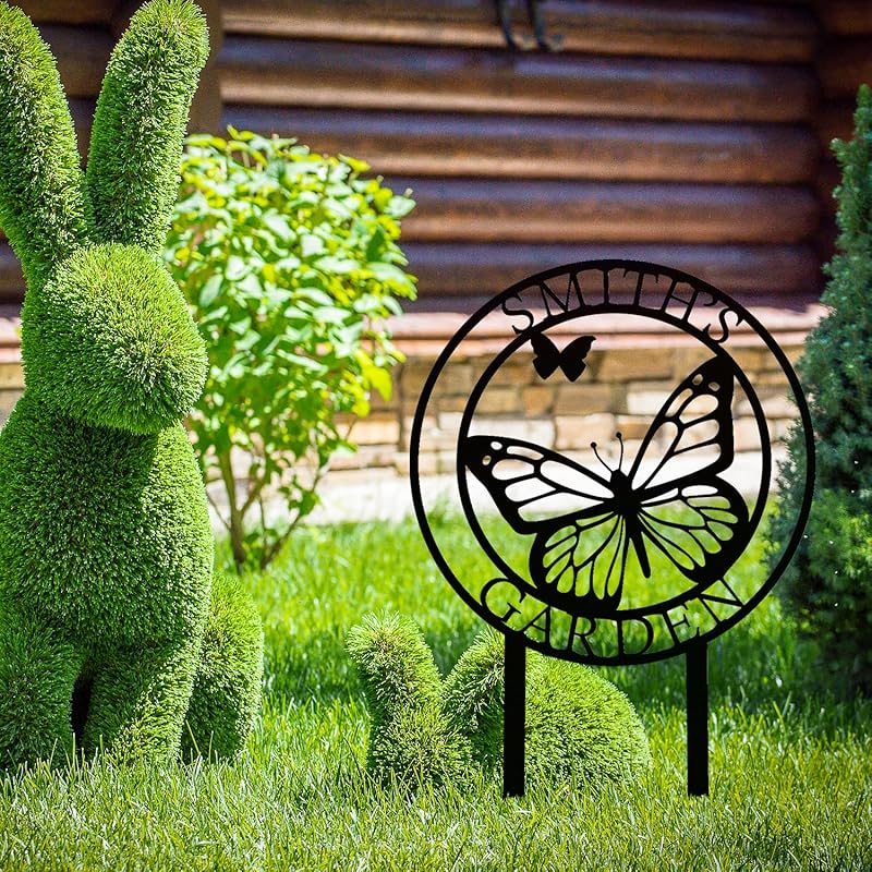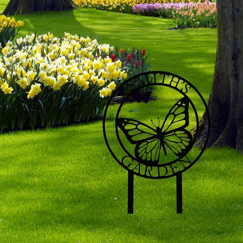 Custom Butterfly Metal Garden Sign with Stakes, Metal Yard Art, Personalized Butterfly Home Garden Decor, Garden Family Name Sign for Outdoor New Home Gift for Outside, Patio Decor, Housewarming Gift
