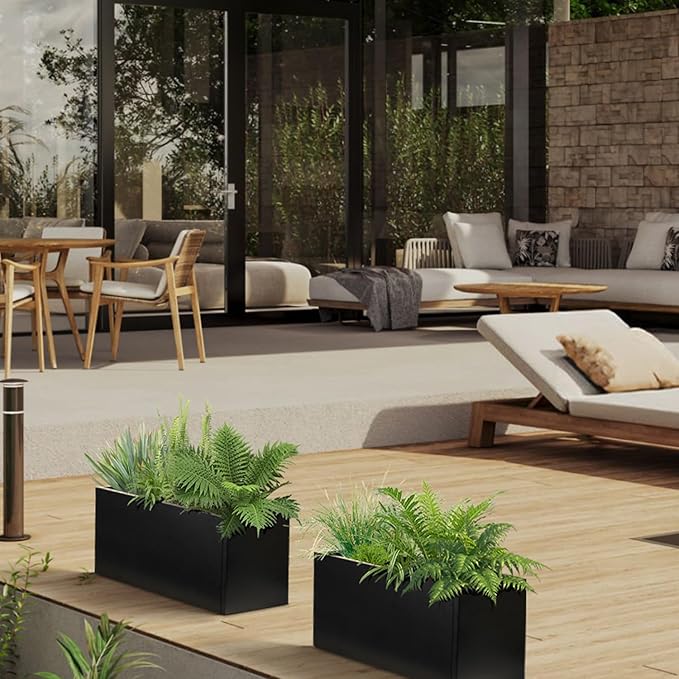 • [ Black Rectangular Planter] Galvanized planter box is made of galvanized steel with black powder coating. Galvanized Steel Planter is wear-resistant, corrosion-resistant and long lifetime.