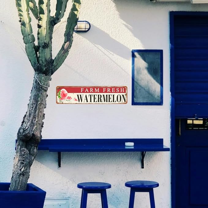 - Farm Fresh Watermelon Sign Vintage Metal Tin Sign Size: 8x12 Inches (20x30 Cm). You Will Receive 1 Be printed Farm Fresh Watermelon Locally Grown Sign Personalized Wall Art Signs Simple And Elegant, And A Humorous Design That Will Bring Laughter To You And Your Friends And Loved Ones!