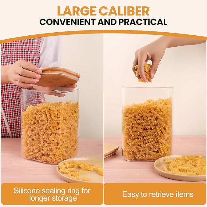 - Elegant and Practical Design: Elevate your kitchen organization with the sleek, square design of our Glass Food Storage Jars. These jars aren't just functional â they're also a stylish addition to your countertop or pantry. The clear glass allows you to easily identify the contents, making meal prep and cooking a breeze