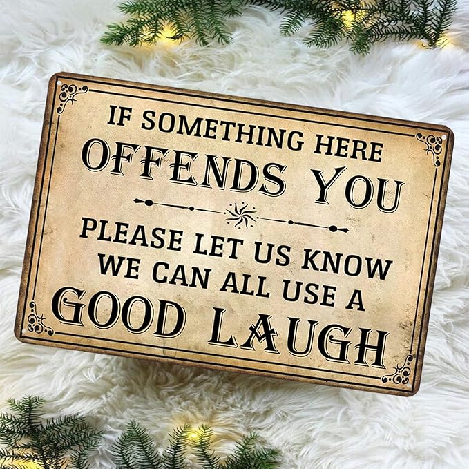 Bar Sign Man Cave Decor - Vintage Garage Metal Tin Signs for Men Funny If Something Here Offends You Poster Wall Art, Sports Bars Outdoor Accessories Decorations 8x12 Inch