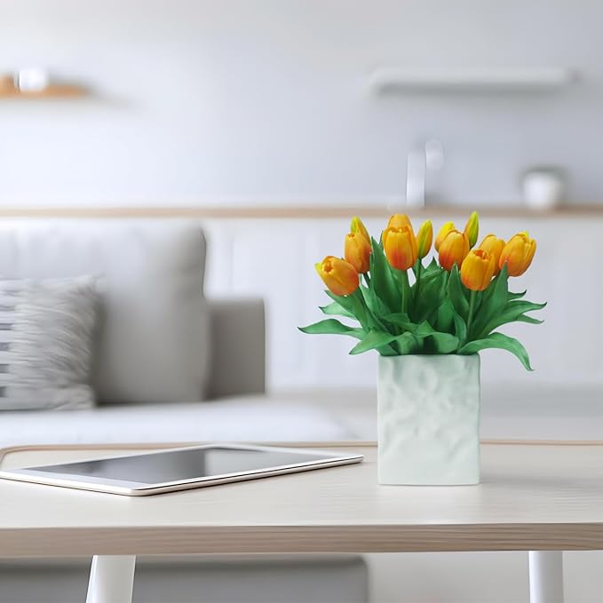 • [Low Maintenance]: Compared to real flowers, fake tulips require minimal upkeep. faux tulips won't wilt, offering a long-lasting decorative option. There's no need for watering, pruning, or sunlight, making them perfect for busy individuals or environments where real plants struggle to thrive.
