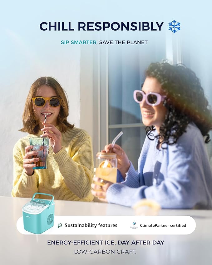 - Portable Design & Bullet Ice: Our ice maker comes with a sturdy handle, weighs only 13.89lbs and with compact size 11.57(L)x11.42(W)x8.74(H)in. Those features make ice maker easy to carry and perform well on any occasions like Kitchen/Home/Camping/RV/Party/Dorm. Also, the newly designed countertop ice maker produce the most popular bullet-shaped smooth ice cubes, which won't stick together easily or hurt your hands or mouth even are excellent for cold drinks, iced coffee or chew as snacks