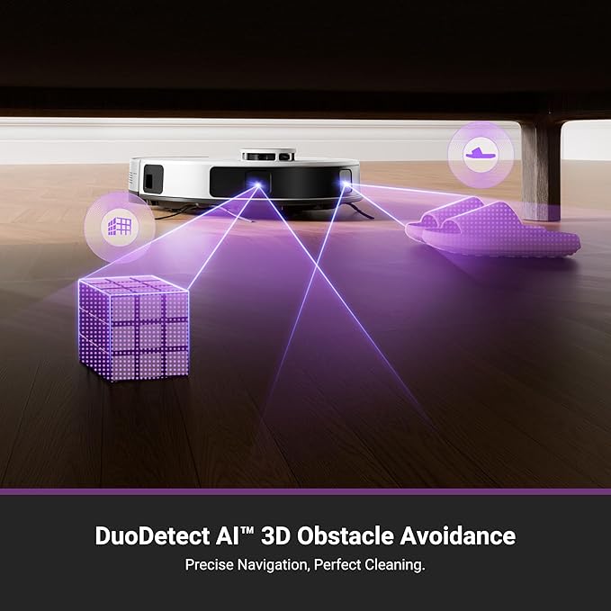 - 【AI 3D Obstacle Avoidance & Night Vision Capabilities】Greater precision, reduced confusion. It features two LiDAR Light Detecting Sensors (LDS) on the front, which greatly enhance its precision in navigating and dynamically sensing obstacles allows the Eureka E20 Plus tobot vacuum to navigate and avoid obstacles in low-light environments with remarkable efficiency.