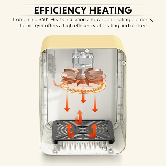 • Healthier & Fast Cooking - With 360° heat circulation and advanced carbon heating elements, enjoy meals with up to 90% less oil—ideal for maintaining a healthy diet without sacrificing crispy taste.