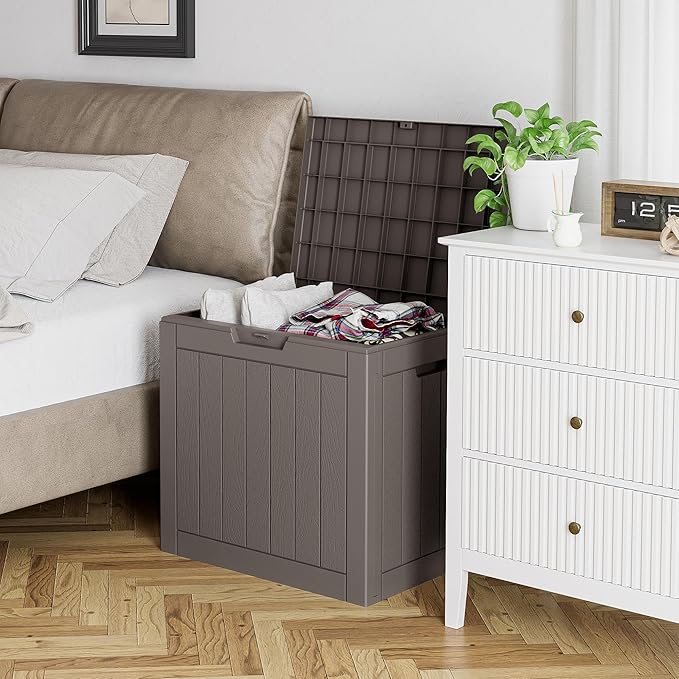 • AMPLE STORAGE SPACE - With a storage capacity of 32 gallons and dimensions measuring 22" in length x 17" in width x 21" in height, weighing 8.5 pounds, and a weight capacity of 230 pounds, The deck storage box provides enough space to store indoor and outdoor items like outdoor cushions, sports equipment, pool tools, garden tools, and equipment.