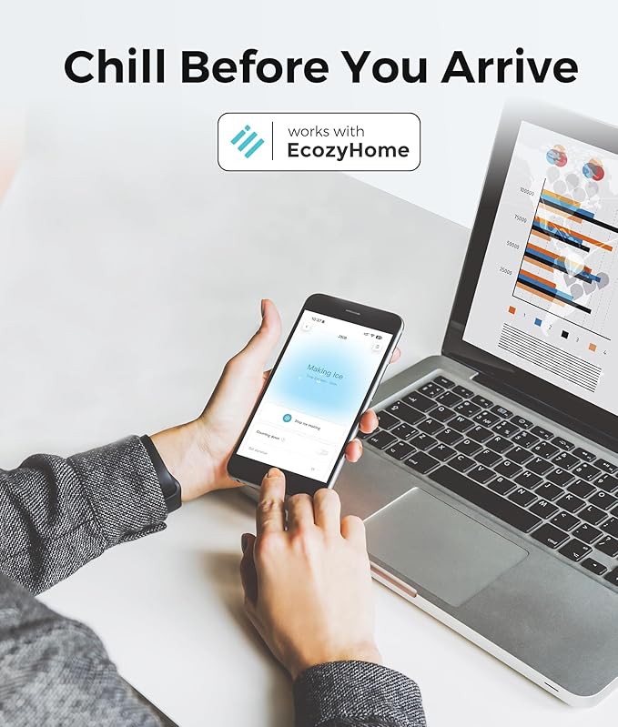 • Smart Ice Control with the App: Use the EcozyHome app to make ice control easy – start, stop, or schedule ice production to suit your day (Supports 2.4GHz Wi-Fi only)