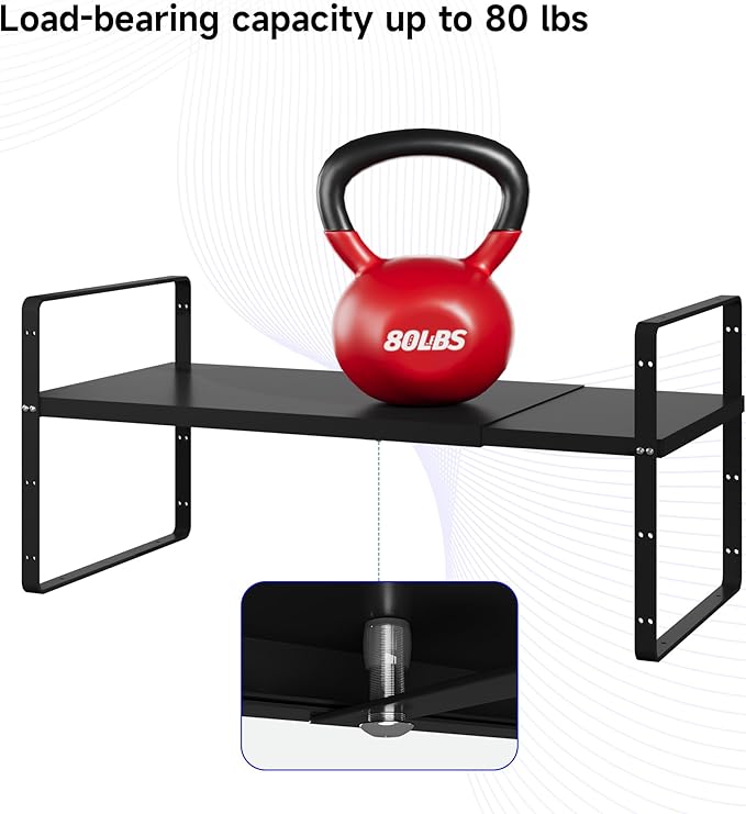 • Flexible Storage Solution: This cabinet shelf is both expandable and stackable, adjusting from 16.7 to 27.2 inches in width. Stack multiple shelves to maximize your storage space